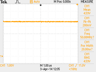 | Setup Oscilloscope to measure power supply voltage. | |