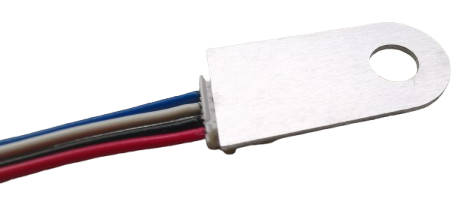 This digital temperature sensor allows for easy mounting on a heating surface via an M5 stud screw and nut.